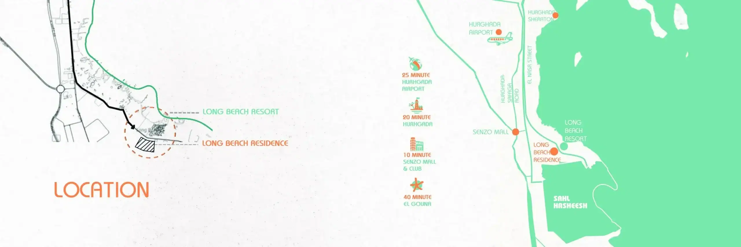 The distinguished Long Beach Resort lies along the prestigious El-Nasr Street, just a 19-minute drive from Hurghada International Airport. The exclusive new extension graces the landscape directly across from the existing property, offering a seamless blend of accessibility and refined elegance for discerning travelers and investors.