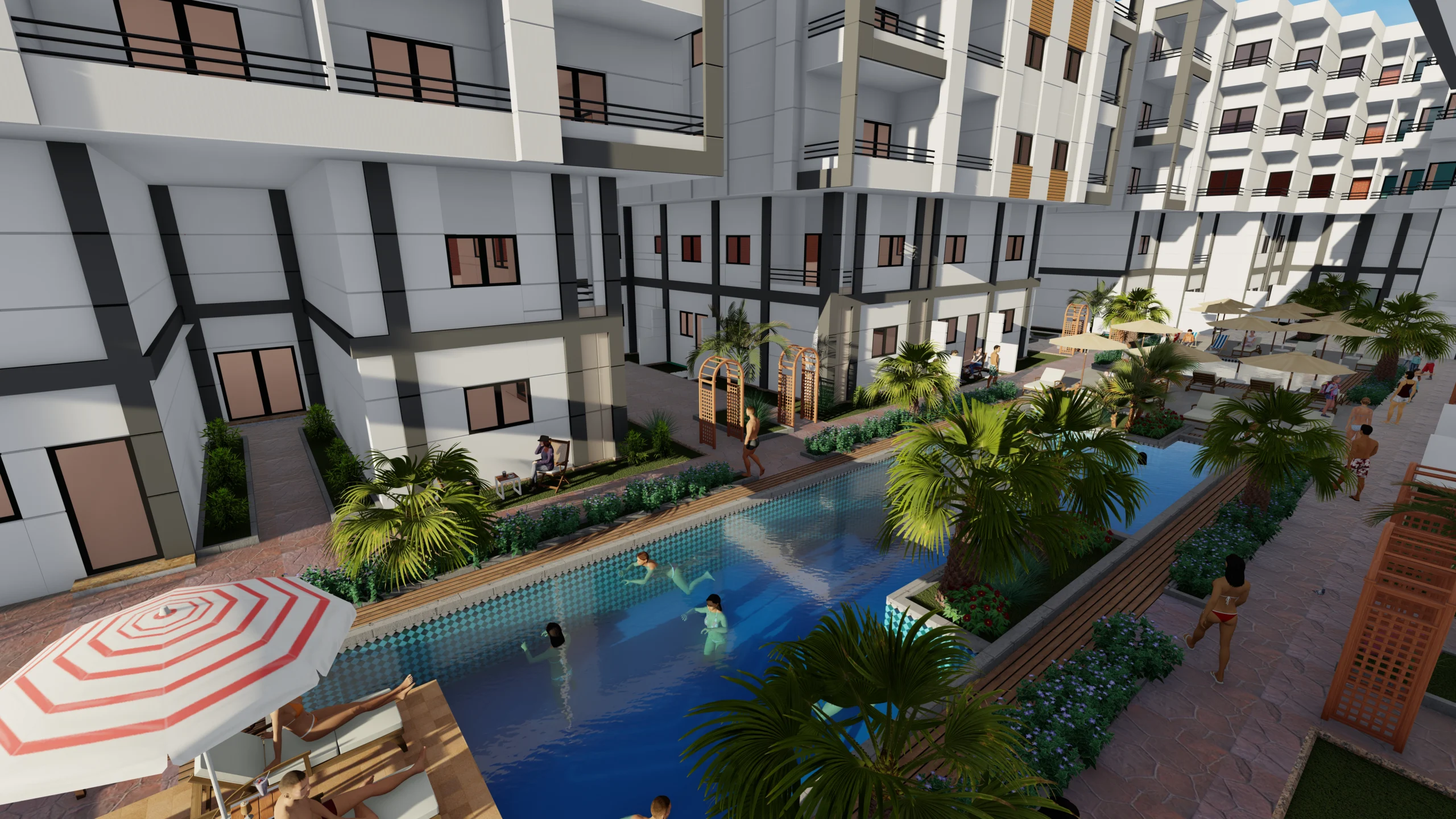 ✔ 3 swimming pools ✔ Children’s play area ✔ Equipped gym ✔ Spa ✔ Shopping center ✔ Vast green spaces ✔ Prime location on the main street ✔ Distinguished location opposite Best Way supermarket ✔ 24/7 security ✔ Maintenance services ✔ CCTV surveillance system ✔ Gomala Hyper Market